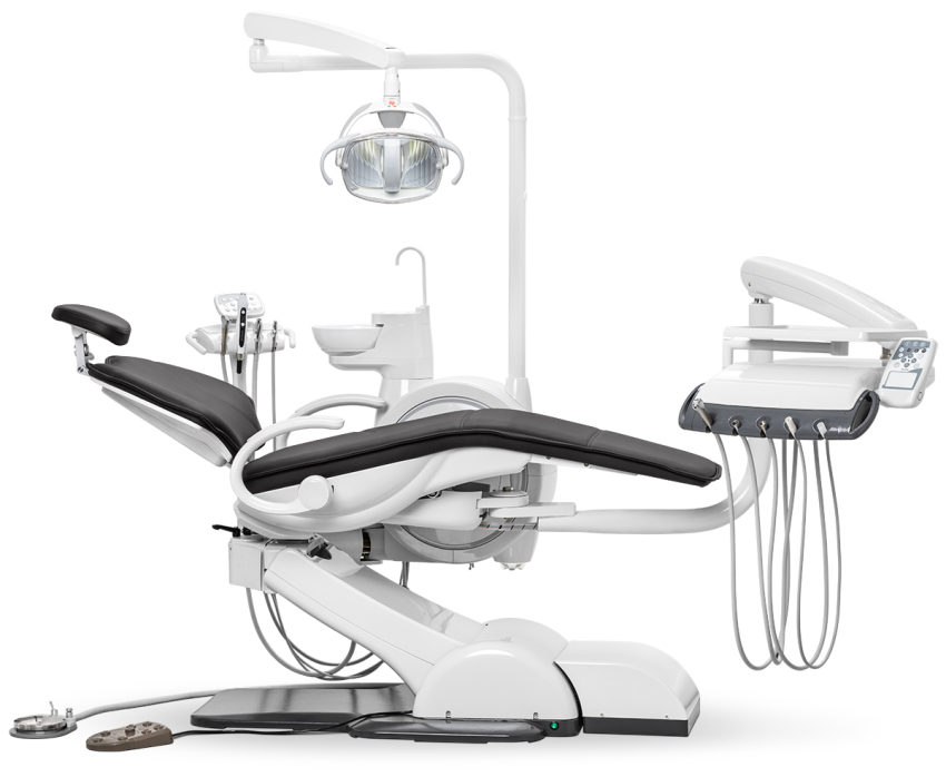 Главная особенность модели — система «Перформер», позволяющая переключать конфигурацию для врачей правши и левши без потери функциональности. Это решение делает установку по-настоящему универсальной. Чугунное основание и каркас кресла из алюминиевого сплава обеспечивают исключительную устойчивость.